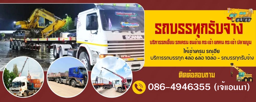 บริการให้เช่ารถบรรทุกติดเครน เพื่อรองรับการขนส่ง ขนย้าย สินค้า เครื่องจักร โฟล์คลิฟท์ ตู้คอนเทนเนอร์เฮี๊ยบ 6 ล้อ, เฮี๊ยบ10 ล้อ, รถเทรลเลอร์, รถโลวเบด, รถเฮี๊ยบ